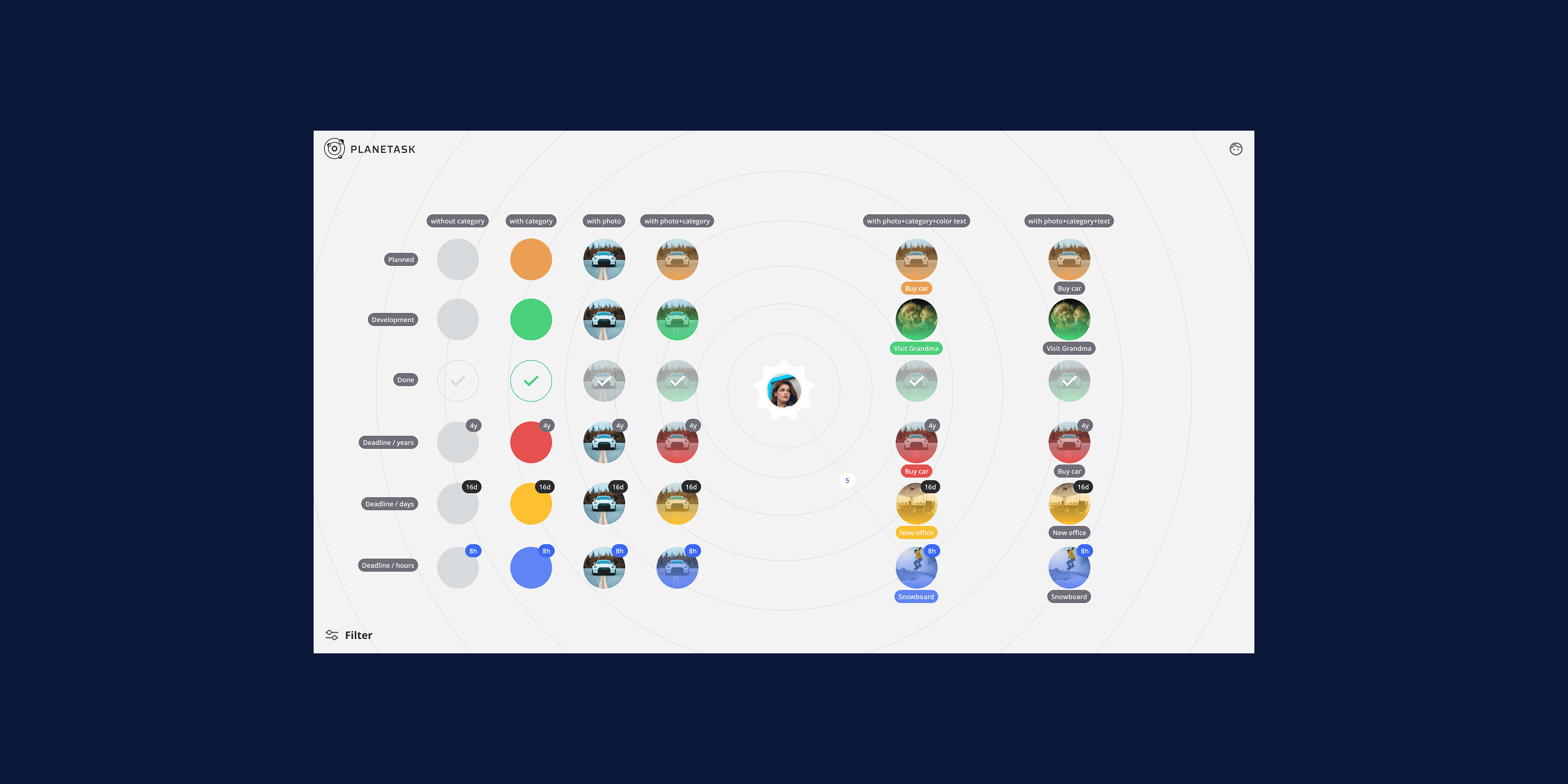Visual Task Manager built natively for big dreamers and accurate planners. Associate your tasks with the pictures you choose for them. Your most ambitious goals are realized much easier when you know exactly how the final result looks like. Visual patterns are perceived a way more effective than text descriptions.